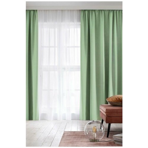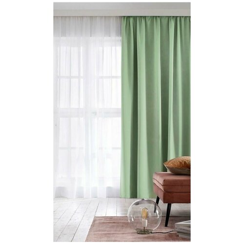 Портьера Tex Valley Сатен ширина 200 см, высота 270 см, Фисташка, 1 шт