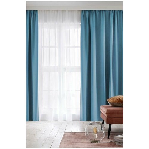 Портьера Tex Valley Сатен ширина 150 см, высота 250 см, Голубой, 2 шт