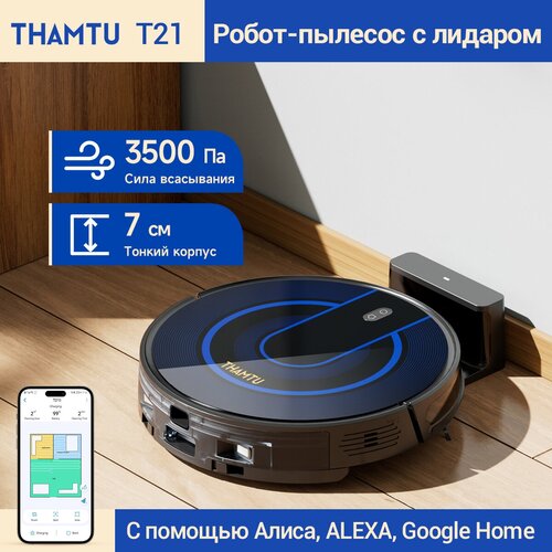 Робот-пылесос с лидаром THAMTU T21, Российская версия, Сила всасывания 3500 Па, Тонкий корпус 7 см, Управление через приложение (ЕАС-сертификат)