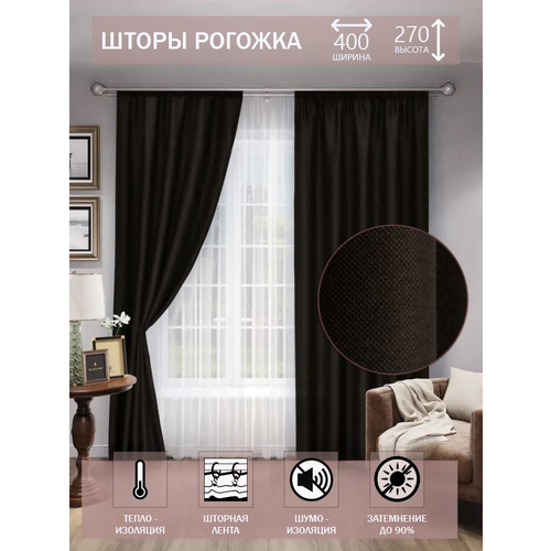 Комплект штор THouse рогожка блэкаут 400х270 на шторной ленте, шоколадный (венге)