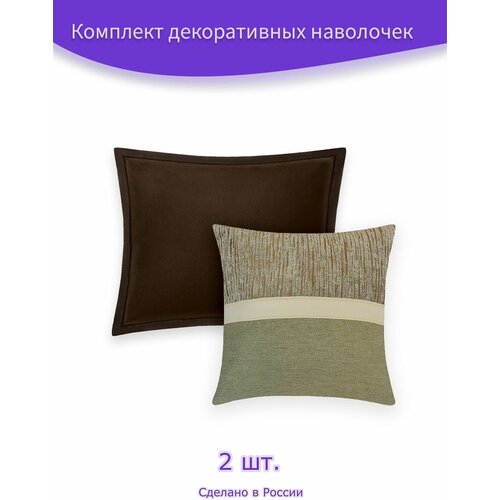 Комплект наволочек - чехлы для декоративной подушки на молнии 45 х 45 см. - 1 шт, 45 х 65 см - 1 шт, темно-бежевый, темно-коричневый