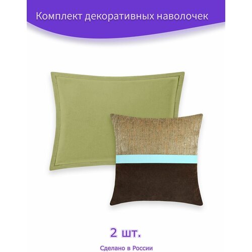 Комплект наволочек - чехлы для декоративной подушки на молнии 45 х 45 см. - 1 шт, 45 х 65 см - 1 шт, темно-бежевый, светло-зеленый