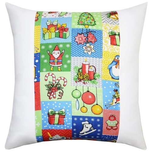 Наволочка - чехол для декоративной подушки на молнии Праздник в доме II, 45 х 45 см, белый, синий, красный, зеленый