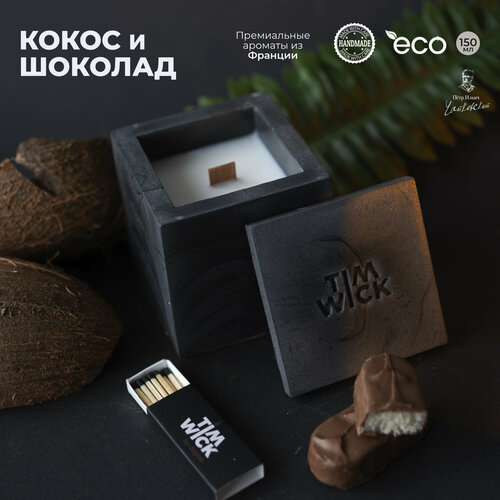 Свеча ароматическая Black TESSERACT с ароматом "Кокос и шоколад/Bounty" в бетонном кубе 150ml.
