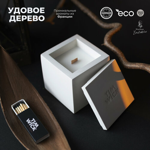 Свеча ароматическая White TESSERACT с ароматом «Удовое дерево/Pinocchio» в бетонном кубе 150ml.