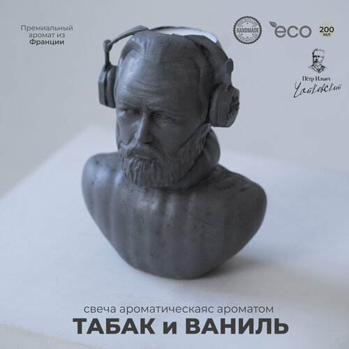 Свеча ароматическая Pitch Band Black 200мл. с ароматом Табак и Ваниль в форме из бетона Чайковский