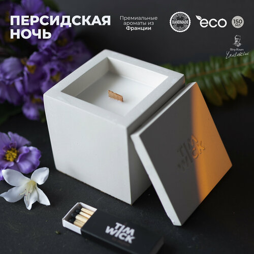 Свеча ароматическая White TESSERACT с ароматом «Персидская ночь/Persian Night» в бетонном кубе 150ml.