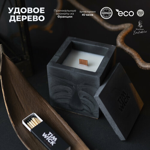 Свеча ароматическая Black TESSERACT с ароматом «Удовое дерево/Pinocchio» в бетонном кубе 150ml.
