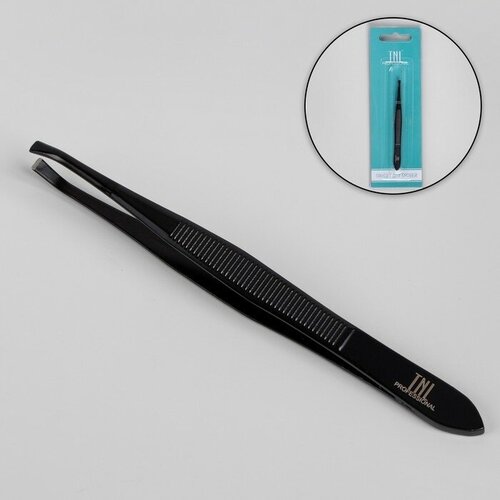 TNL Пинцет прямой, узкий, 8,5 см, цвет чёрный