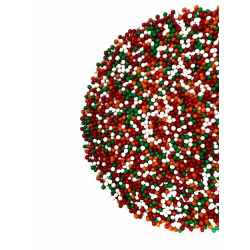 Посыпка кондитерская для выпечки на торт 50 г Шарики красно-бело-оранжево-зелёные Микс №8