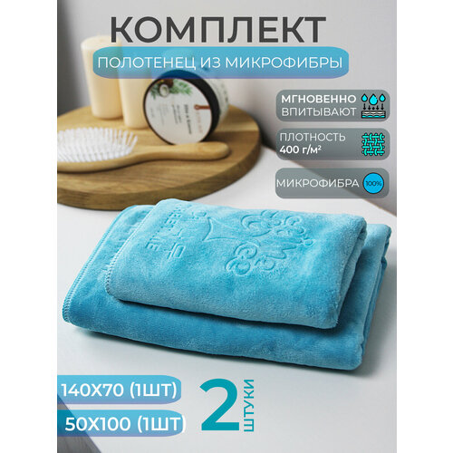 Набор полотенец банное и для волос TreeTime из микрофибры, голубой