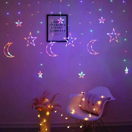 Электрогирлянда интерьерная Звезды-Луна разноцветная 3 м, питание От сети 220В.