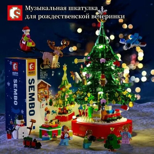 Детский развивающий конструктор блочный " Новогодняя елка - музыкальная шкатулка" - 870 деталей Зеленая