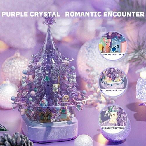 Детский развивающий конструктор блочный " Новогодняя елка - музыкальная шкатулка" - 675 деталей Розовая