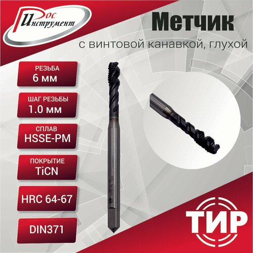 Метчик с винтовой канавкой, глухой М 6х1,0 HSSE-PM 6H TiCN DIN371