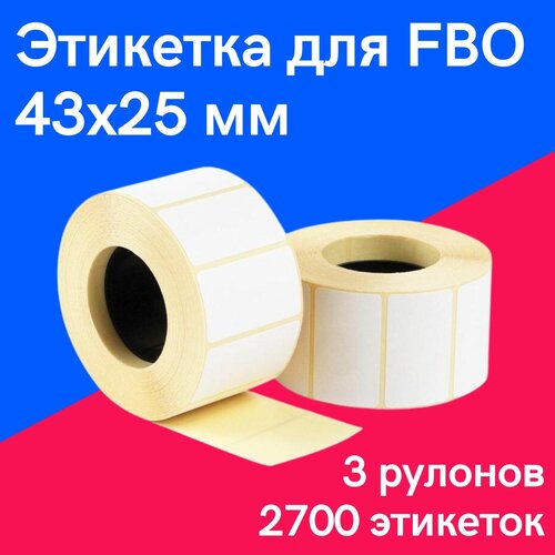 Термоэтикетка самоклеящиеся, Этикетки ЭКО, 43х25 мм для FBO - 3 рулона по 900 этикеток