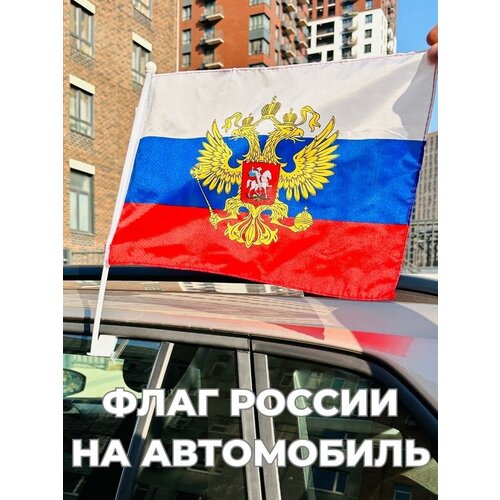 Флаг России Триколор с Гербом на автомобиль, флаг 30 х 45 с креплением для авто