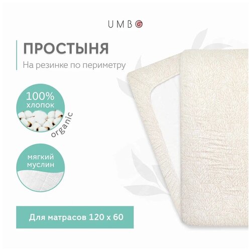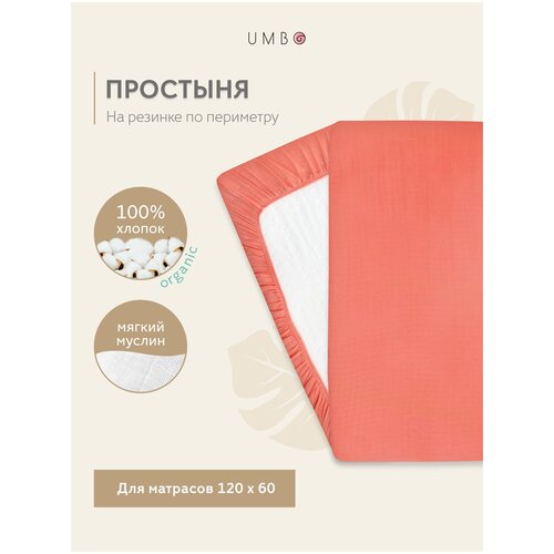 Муслиновая простыня UMBO на резинке, 100% органический хлопок, 120x60 см