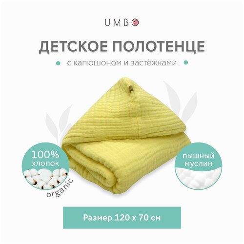 Полотенце детское из жатого муслина с кнопкой и капюшоном UMBO, 100% органический хлопок, 120х70 см