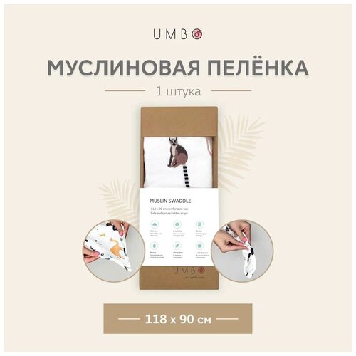 Муслиновая пеленка UMBO, 100% органический хлопок, 118х90 см
