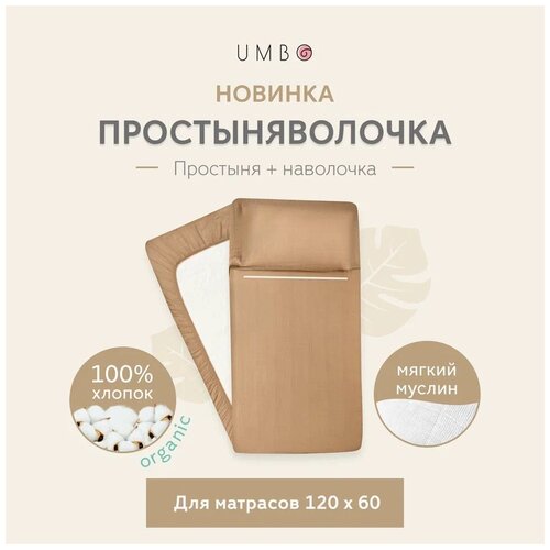 Муслиновая простыня на резинке с интерированной наволочкой UMBO, 100% органический хлопок, 120x60 см