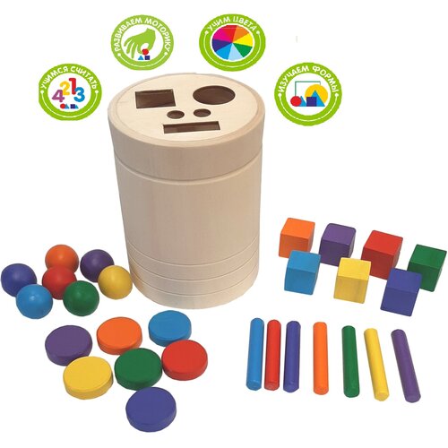 Сортер деревянный UMPA Бочонок с фигурками/Сортер для малышей Монтессори