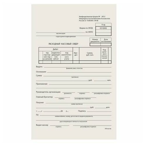Бланк бухгалтерский типографский "Расходно-кассовый ордер", А5 (134х192 мм), склейка 100 шт, 130005