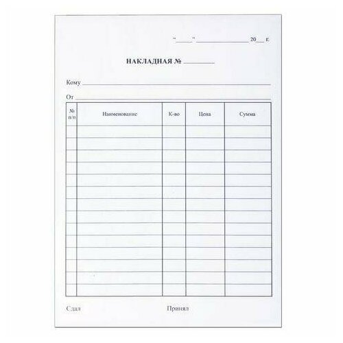 Бланк бухгалтерский, офсет, 2-х слойный самокопирующийся с подложкой, "Накладная", А5 (151х208 мм), спайка 50 шт, 130152