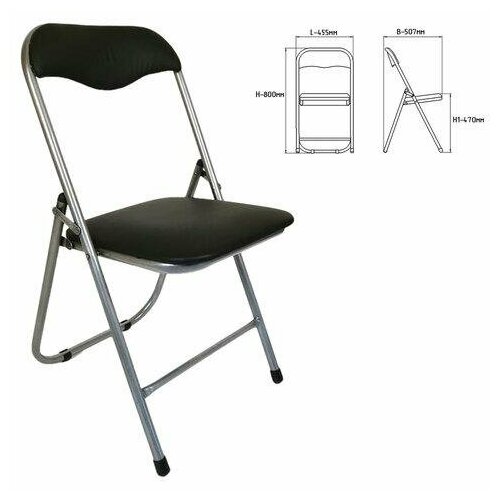 Стул складной для дома и офиса РС04, серебристый каркас, кожзам черный
