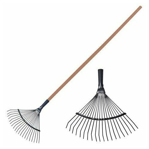 Грабли веерные проволочные, 20 зубьев, ширина 35 см, деревянный черенок 120 см, КМ000881