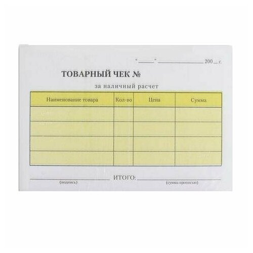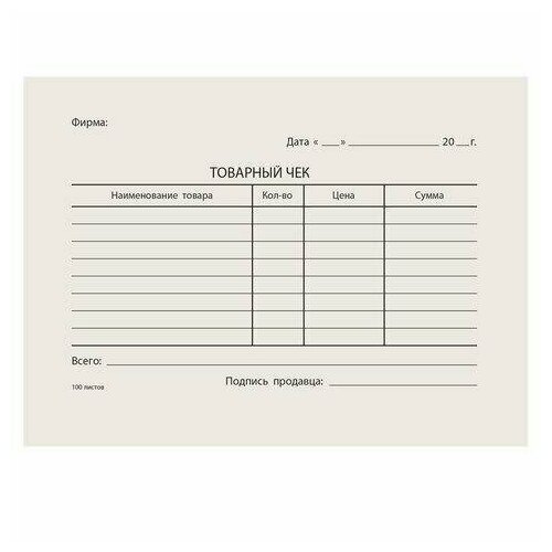 Бланк бухгалтерский типографский "Товарный чек", А6 (97х134 мм), склейка 100 шт, 130015