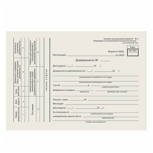 Бланк бухгалтерский типографский "Доверенность", А5 (134х192 мм), склейка 100 шт, 130013