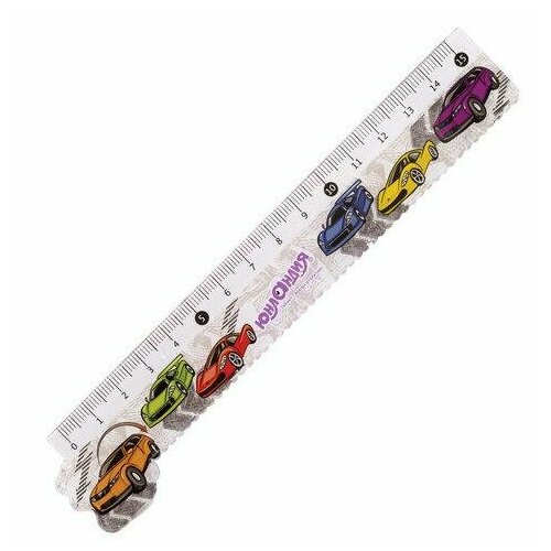 Линейка пластиковая 15 см юнландия "машинки", фигурная, цветная печать, с волнистым краем, 210729