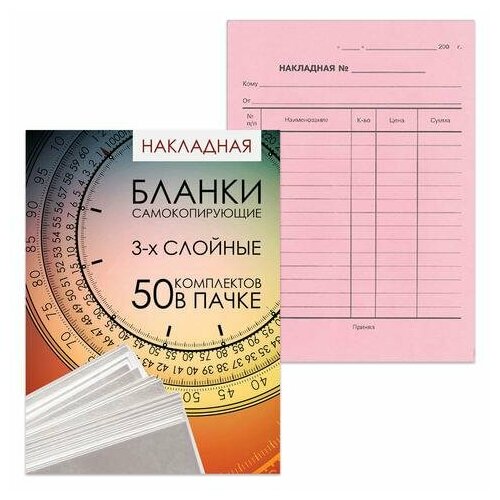 Бланк бухгалтерский, офсет, 3-х слойный самокопирующийся с подложкой, "Накладная", А5 (151х208 мм), спайка 50 шт, 130155
