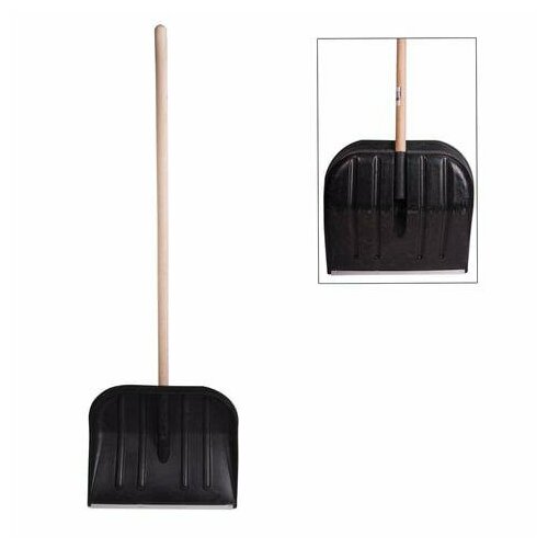 Лопата снегоуборочная пластиковая, 46х40 см, высота 130 см, с алюминиевым наконечником, деревянный черенок, №2, 603556