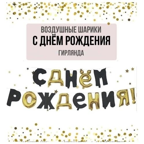 Набор воздушных шаров гирлянда С днём рождения / черно-белые / 40 см