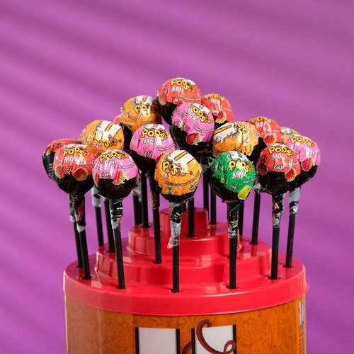 Леденец на палочке U POPS Макси с жевательной резинкой, 16 г х 100 шт в цилиндре