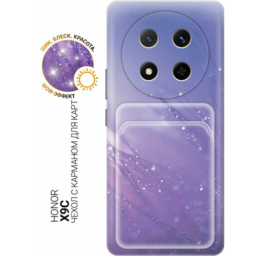 Силиконовый чехол на Honor X9C с принтом "Капли на синей траве" с карманом для карты