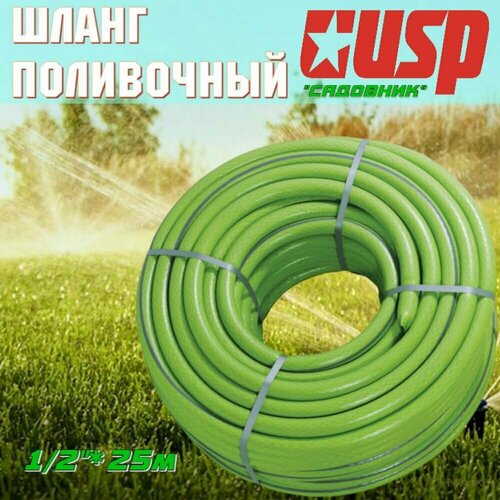 Шланг садовый для полива 1/2"*25м армированный "Садовник" 3-слойный (лайм) USP 77284-13