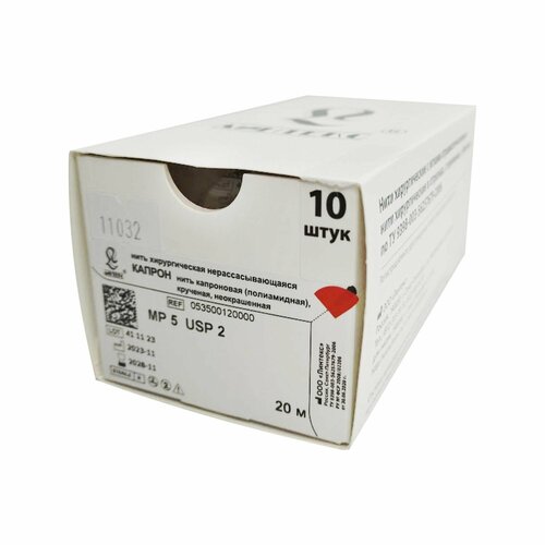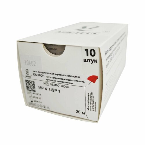 Шовный материал капрон - нить капроновая (полиамидная) крученая, неокрашенная, USP 1, катушка 20 метров (уп.10 шт.)