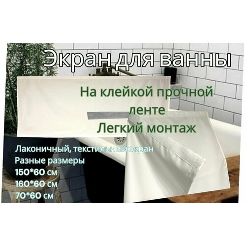 Экран под ванну из водоотталкивающей ткани, размер 150*60 см, крепление не требует монтажа
