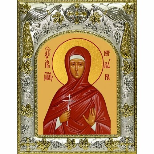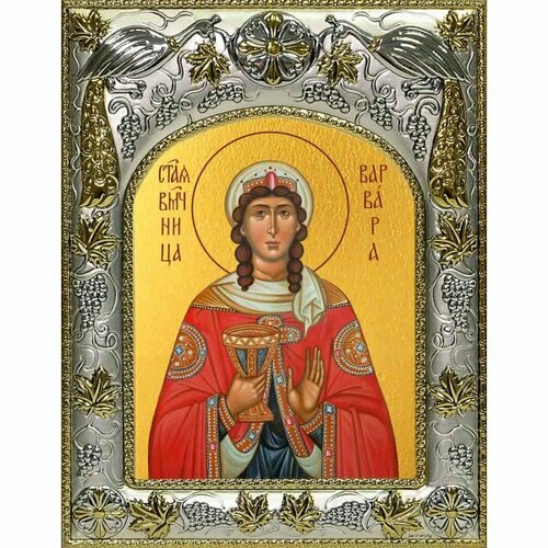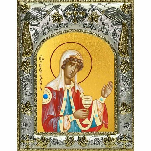 Икона Варвара великомученица 14x18 в серебряном окладе, арт вк-1224