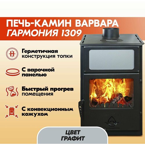 Печь-Камин Варвара гармония 1309 графит отопительно-варочная для дома и дачи, 12 кВт, 200 куб. м