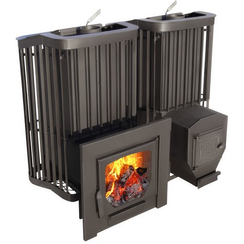 "Дровяная печь для бани Варвара Каменка", удлиненная топка, чугунная дверь