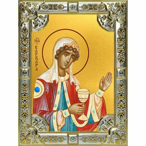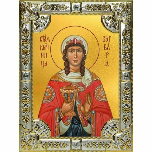 Икона Варвара великомученица 14x18 в серебряном окладе, арт вк-1244
