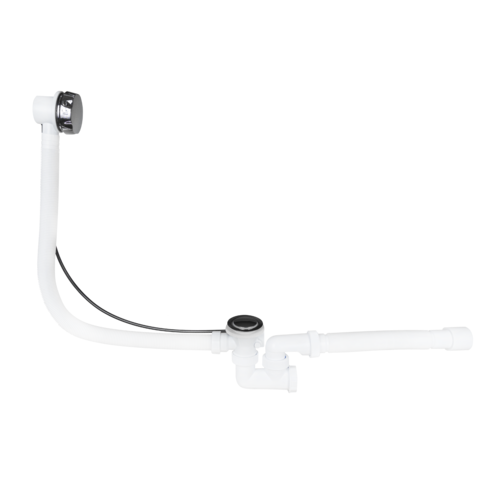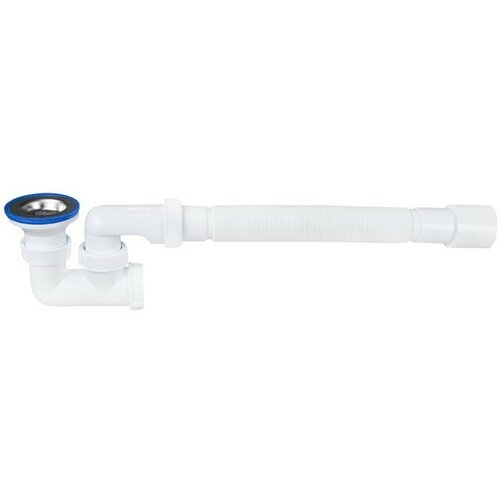 VIANT VV-372, Сифон Профи для ванны проточного типа, с полуавтоматическим сливом, с нержавеющей чашей d70, гофротрубой 40/50, L600мм