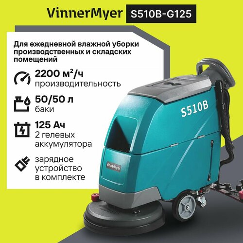 Аккумуляторная поломоечная машина VinnerMyer S510B для влажной уборки производственных и складских помещений