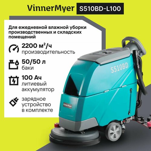 Аккумуляторная поломоечная машина VinnerMyer S510BD для влажной уборки производственных и складских помещений