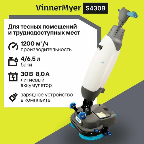 Аккумуляторная поломоечная машина VinnerMyer S430B для влажной уборки тесных помещений и труднодоступных мест