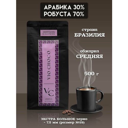 Кофе Арабика 30%, Робуста 70% Бразилия в зернах натуральный жареный, 500 грамм. Экстра большое зерно (№19)